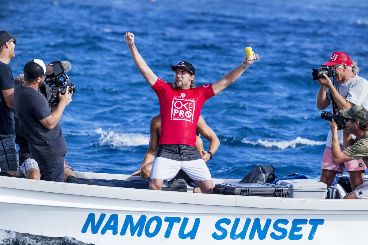 "Sekarang, saya pikir adalah waktunya untuk merayakan kemenangan!" Kata Wilko sembari tertawa saat ia membungkuk karena kelelahan, seringai lebar berada di wajahnya. "Apa lagi yang akan Anda lakukan saat Anda memenangkan OK Fiji Pro!?"