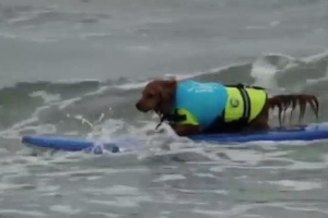 Coba perhatikan mimik muka dari para binatang saat surfing.